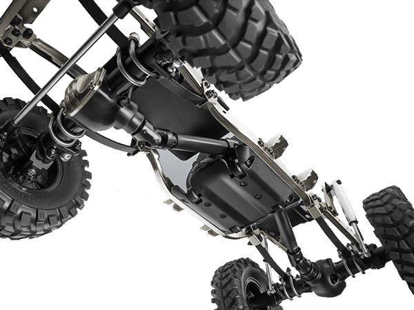Designed from the ground up for scale performance and great looks with or without a body, the Sawback does not disappoint. The steel ladder C channel frame forms the ground work for a great rig and a scale finish. The steel has been nickel plated to resist corrosion, and looks great too! Next add a dust proof receiver box that has been molded to look like a real engine cover. The receiver box also provides a spot to mount your ESC to keep your rig looking clean.